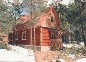 "Русская изба" в коттедже одна спальня с ТВ и холодильником, застекленная веранда-столовая, электрическая плитка,эл. чайник, набор посуды. Удобства в коттедже (душевая кабина, туалет, умывальник).